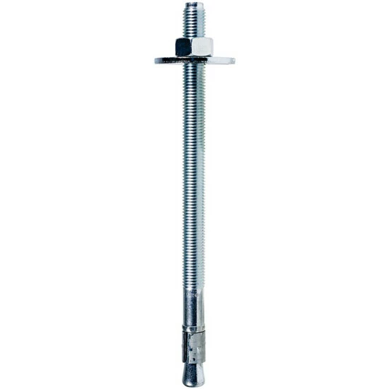 – Ankerbolzen für die Durchsteck- und Vorsteckmontage – Beim Anziehen der Sechskantmutter wird der Konusbolzen in den Spreizclip gezogen und verspannt diesen gegen die Bohrlochwand. – Ausführung GS mit großer Scheibe nach DIN 440 für den Holzbau.