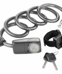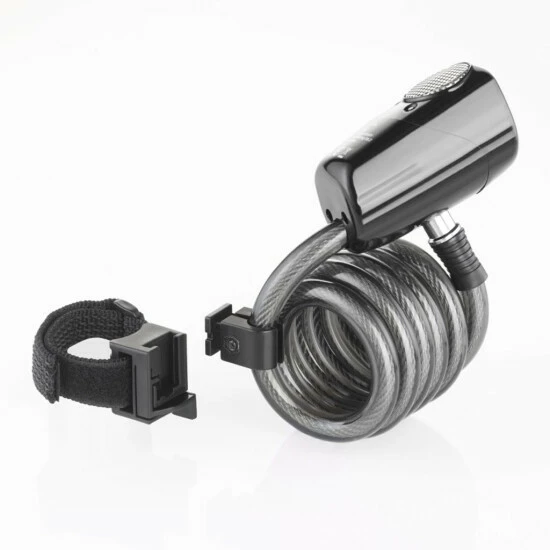Wir machen es Fahrraddieben schwer! Mit dem richtigen Fahrrad-Schloss sichern Sie Ihr Rad vor Diebstahl. Das Spiralkabelschloss ist sehr flexibel und kann im Handumdrehen an Zäunen, Laternenpfählen, Verkehrstafeln oder anderen Fahrrädern befestigt werden. Durch die besondere Form ist es zudem platzsparend und leicht zu transportieren. Die Kunststoffummantelung schützt die Lackoberfläche vor Kratzern und anderen Beschädigungen. Das besondere an diesem Schloss: Die integrierte Alarmfunktion wird bei Durchtrennen des Kabels oder durch Stöße bei aktiviertem Bewegungsmelder ausgelöst. Mit einer Lautstärke von 110dB schlägt es jeden Dieb in die Flucht. Das Schloss verfügt außerdem über eine bequeme Automatikverriegelung und wird mit 2 Wendeschlüsseln, einem Halter und Batterien geliefert.