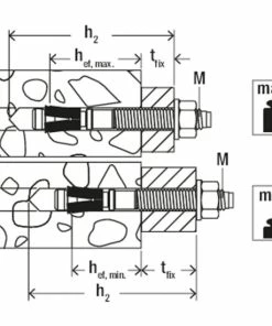 Min. Bohrlochtiefe bei Durchsteckmontage h2 (mm) |