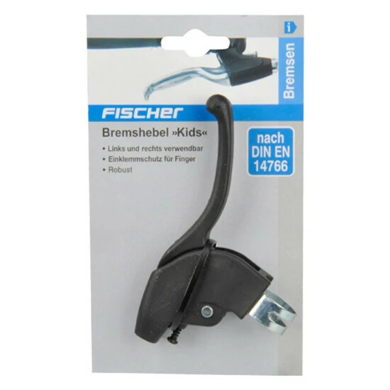Der Bremshebel für Kinderfahrräder kann links und rechts verwendet werden und verfügt über einen Einklemmschutz für Finger. Die robuste Ausführung entspricht der Norm DIN EN 14766.