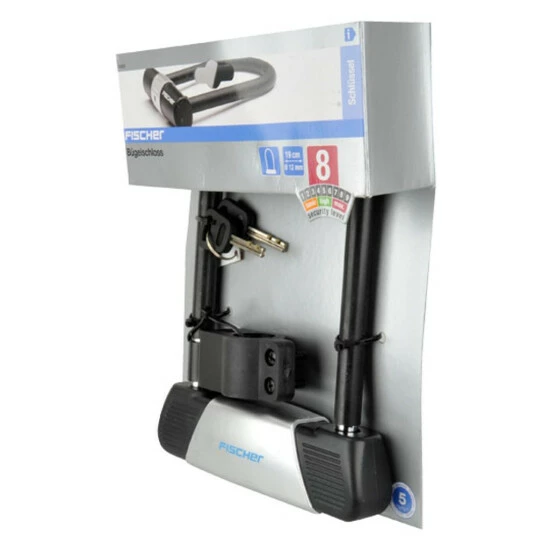 Wir machen es Fahrraddieben schwer! Mit dem richtigen Fahrrad-Schloss sichern Sie Ihr Rad vor Diebstahl. Nicht ohne Grund gehören Bügelschlösser zu den am meist verkauften Fahrradschlössern. Stabilstes Material und keine beweglichen Teile außerhalb des Schließmechanismus bieten eine hervorragende Ausgangslage für härtesten Widerstand. Das FISCHER Bügelschloss 20cm ist extrem Aufbruch-sicher und besitzt einen besonders widerstandsfähigen U-Bügel aus 12mm Stahl. Der Schlosskörper ist durch einen schlagfesten Kunststoffüberzug und der Stahlschliesszylinder ist vor Schmutz und Wasser durch eine Abdeckung geschützt.