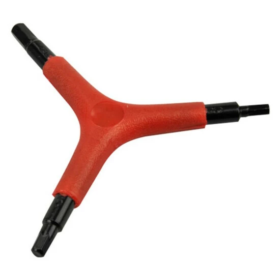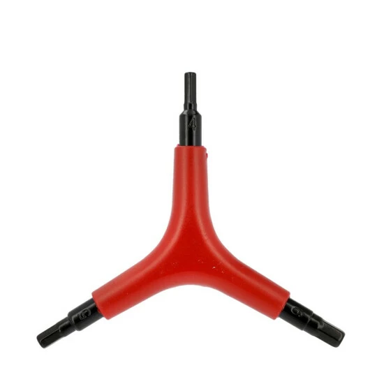 Der Dreiarm-Sechskantschlüssel bietet ein passendes Zubehör für alle Fahrradfahrer. Er hat die die Größe von ca. 4, 5 und 6 mm.