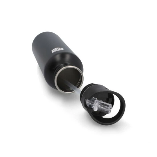 Die Trinkflasche ermöglicht komfortables Trinken ohne Überkopf-Stellung dank des innovativen Strohhalm-Prinzips. Sie besteht aus leichtem, rostfreiem Edelstahl. Sie fasst ein Volumen von 0,75 l und ist sowohl geschmacksneutral, als auch lebensmittelecht.