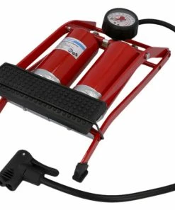 Die Fußluftpumpe mit Doppelzylinder für eine verstärkte Pumpleistung ist für alle gängigen Ventile geeignet. So kommt sie bei Auto-Ventile, Sclaverand-Ventile und Dunlop-Ventile zum Einsatz. Dabei gibt das Manometer Auskunft über den Druck. Zum Lieferumfa