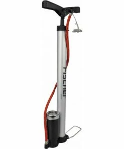Die Fußpumpe ist mit einem Manometer ausgestattet, das die Kontrolle über den zugeführten Luftdruck erlaubt. Die Pumpe besteht aus Aluminium, hat einen kräftigen Hub und eine maximale Pumpleistung von 8 bar.
