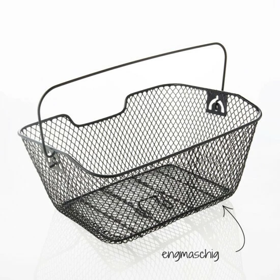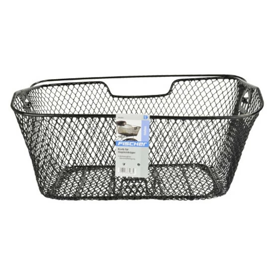 FISCHER Fahrrad-Korb für den Gepäckträger, schwarz engmaschiger Draht “pfennigdicht”, mit doppelt gebogener – 1 Stück (61063)