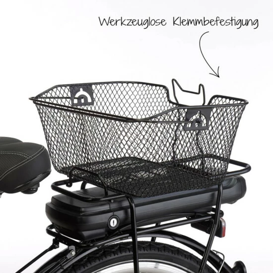 Korb von Fischer Fahrradkorb für Gepäckträger engmaschig werkzeuglose Klemmbefestigung Farbe: schwarz