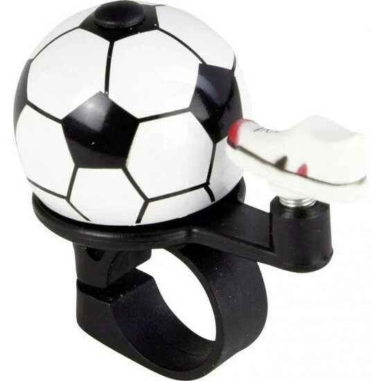 Die Mini-Fahrradglocke sorgt für einen durchdringenden Klingelton. Dank des modernen Fußball-Designs bietet sie ein schönes besonders schönes Fahrrad-Accessoire.