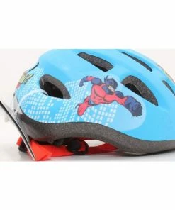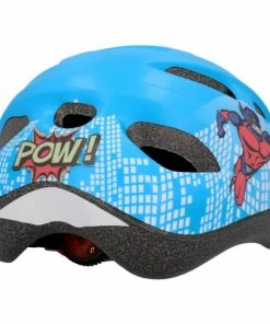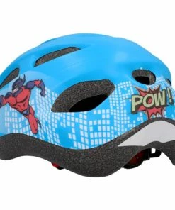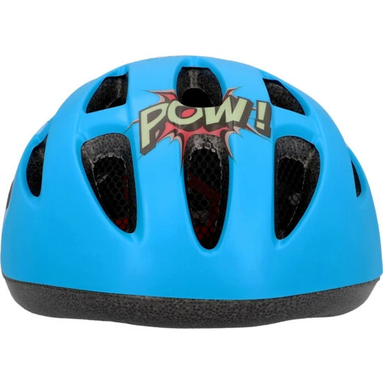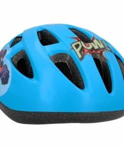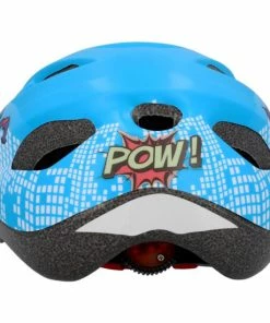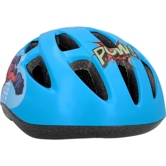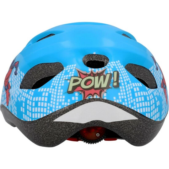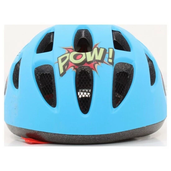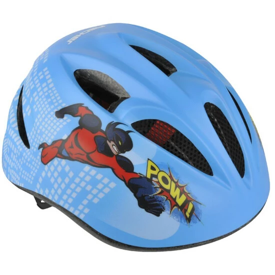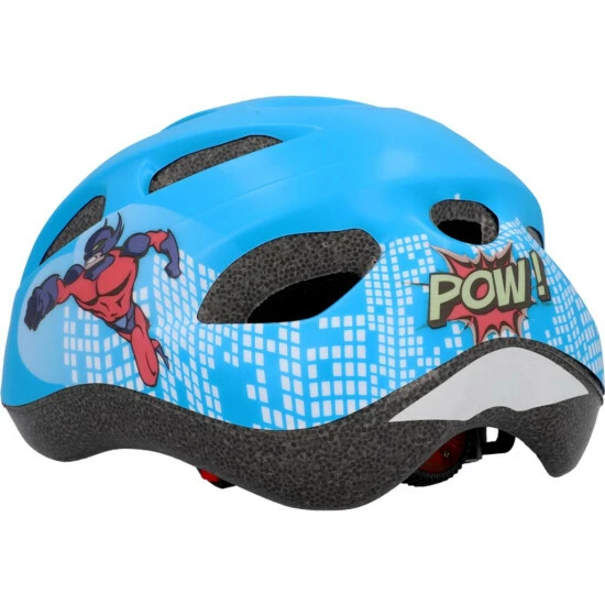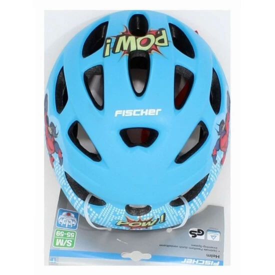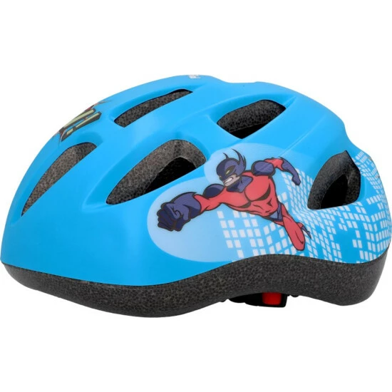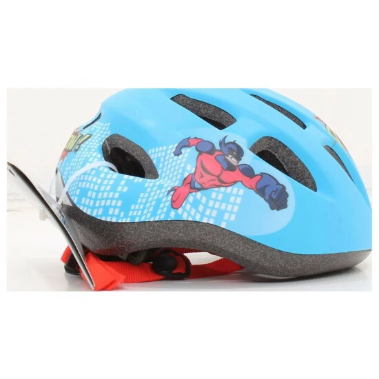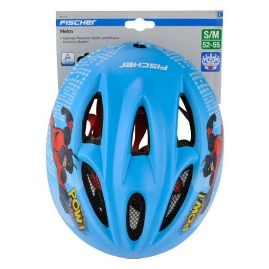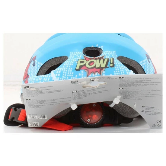 Innenschale aus hochfestem EPS, verstellbares, beleuchtetes Innenring-System, mit Insektengitter, gute Belüftung durch 11 große Lufteinlässe, Visor abnehmbar, mit Comic-Motiv, auf Blisterkarte, Kopfumfang: 550 – 590 mm