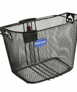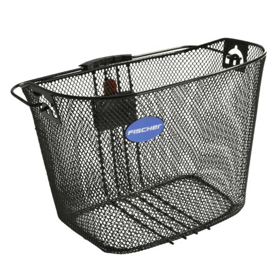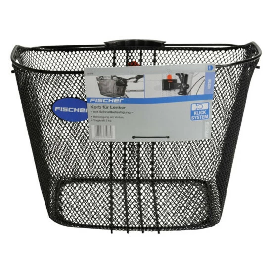Korb von Fischer Fahrradkorb für Lenker mit Schnellbefestigung –, KLICKSYSTEM Engmaschig Befestigung am Vorbau Tragkraft 5 kg Sekundenschnelles Lösen per Knopfdruck Verdreh und Kippsicherung Winkel verstellbar Farbe: schwarz
