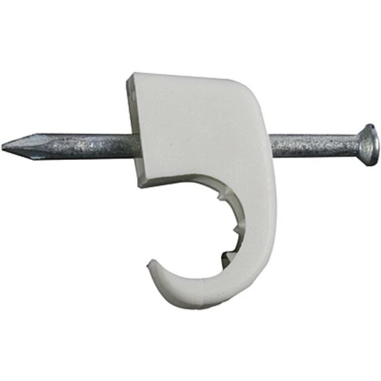 Die Nagelschelle mit eingelegtem Kabel positionieren. Vormontierten Nagel mit dem Hammer einschlagen