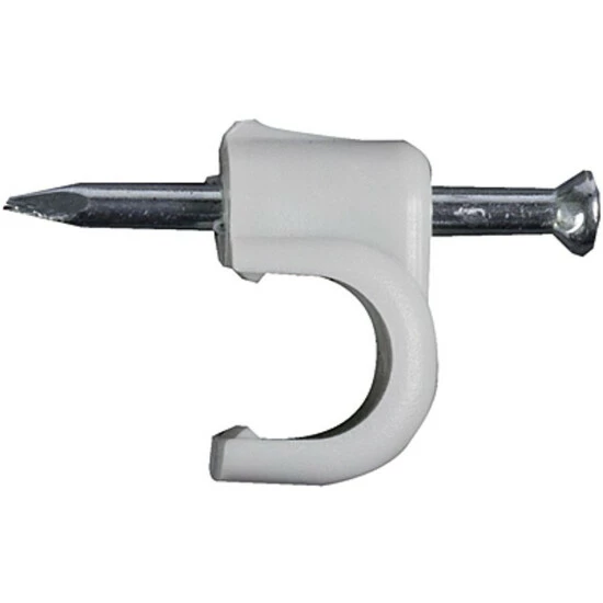 Die Nagelschelle mit eingelegtem Kabel positionieren. Vormontierten Nagel mit dem Hammer einschlagen