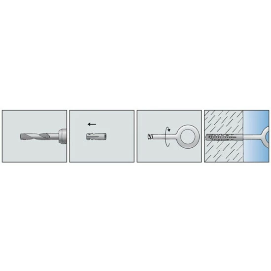 Die Universal Ösenschraube zur Verwendung mit fischer Langschaftdübeln oder direkt in Holz