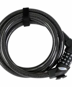 Seil nicht spiralisiert. 4-fach Zahlenwalze mit 10.000 frei wählbaren Zahlenkombinationen. Inklusive Klettband zur individuellen Befestigung am Fahrrad. Bedienungsanleitung inliegend.Länge: 180 cmØ 14 mmFSH-System Security 4