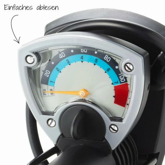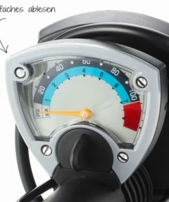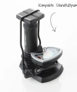 Die Fußpumpe mit Doppelkopf ist für alle gängigen Ventile geeignet. So kommt sie bei Auto-Ventile, Sclaverand-Ventile und Dunlop-Ventile zum Einsatz. Das Aufpumpen gelingt ohne großen Kraftaufwand, während das Manometer Auskunft über den Druck gibt. Dank