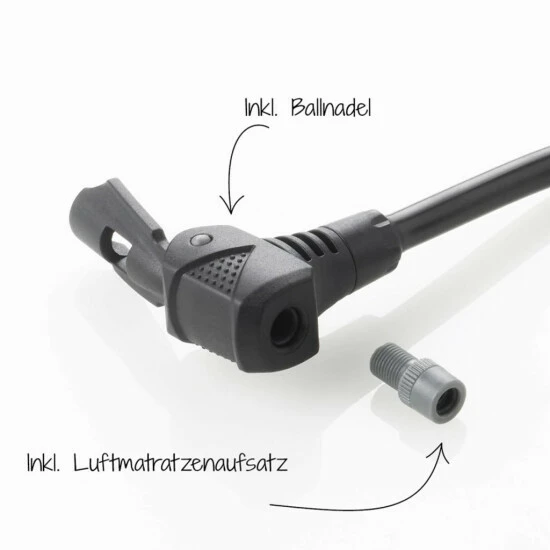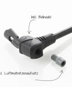 Durch Adapter passend für alle gängigen Ventile, Auto-Ventil (AV), Dunlop-Ventil (DV), Sclaverand-Ventil (SV).passend für AV,DV,SVmit Schnellverschlusseinfaches Aufpumpenmit Haltebügelhochwertiges Spezialnyloneinfaches Aufpumpen mit geringem KraftaufwandGummierte Non-Slip TrittflächeSpezialnyloninklusive Ballnadel und Luftmatratzen Adapter