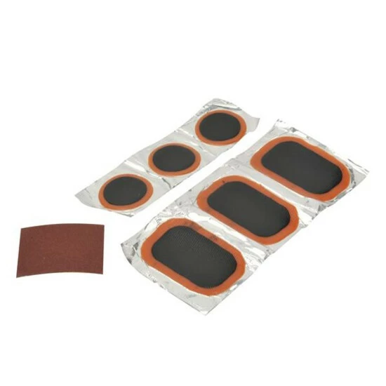 Das 7-teilige Flicken-Set bietet ein praktisches Fahrradzubehör für unterwegs. Es besteht aus drei runden Flicken, drei ovalen Flicken und einem Aufrauher.