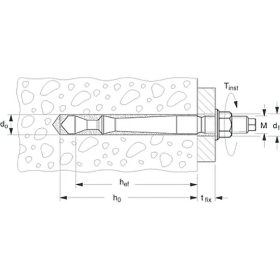 Beim FHB II-A S ist der Bohrdurchmesser gleich dem Gewindedurchmesser, ähnlich einem Bolzenanker.