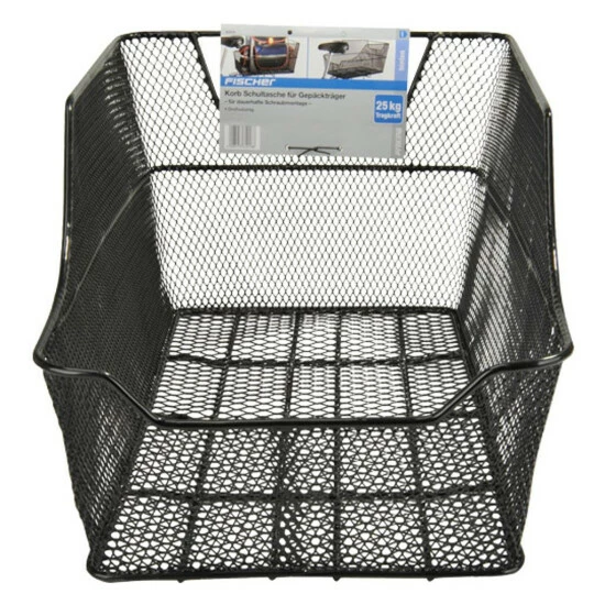 Der FISCHER GepÀcktrÀger Fahrradkorb kann bis zu 25 Kg Gewicht aufnehmen, sofern der GepÀcktrÀger dieses Gewicht verkraftet. Er ist zum Sattel hin abgeschrÀgt, um auch bei tiefer gestellten SÀtteln den Fahrer nicht zu behindern. Der Fahrradkorb mit Halterung wird mit dem passenden Befestigungsmaterial geliefert und kann praktisch diebstahlsicher festmontiert werden. SelbstverstÀndlich lassen sich auch andere Dinge als Schultaschen damit problemlos transportieren wie beispielsweise der Einkauf oder die Aktentasche.