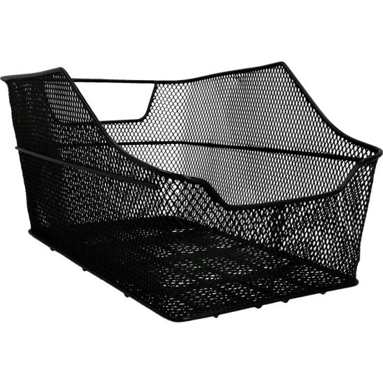 extra groĂer Korbe, geeignet um Schultaschen und mehr zu trsnportieren. Aus engmaschigem Stahl, praktisch und diebstahlsicher durch dauerhafte Schraubmontage auf dem GepĂ€cktrĂ€gerger, vorne abgeschrĂ€gt einfache Beladung und Entladung.
