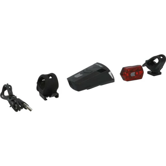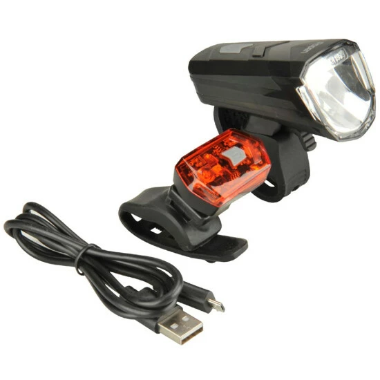 LED Lebensdauer bis zu 50.000h und weniger Verbrauch. LED-Akkufrontleuchte mit integriertem Lithium-Ionen Akku (1000 mAh).Leuchtstärke umschaltbar: 30/15 Lux. Micro-USB-Ladebuchse, inklusive Ladekabel, im Lieferumfang enthalten. Sehr kleines und stabiles Kunststoffgehäuse mit spritzwassergeschütztem Schalter. Inklusive Fahrradhalterung mit Schnellverschluss. Leuchtdauer bis zu 360 min, mit Batterieindikator. LED-Akkurücklicht mit integriertem Lithium-Ionen Akku (300 mAh). Micro-USB-Ladebuchse inklusive Ladekabel, im Lieferumfang enthalten. Inklusive winkelverstellbarer Fahrradhalterung für eine schnelle und leichte Montage ohne Werkzeug. Leuchtdauer bis zu 360 min, mit Batterieindikator. Zugelassen für alle Fahrräder im Bereich der StVZO.Lichtstärke: 15/30 LuxLED Lebensdauer 50.000 hMicro USB-LadebuchseLithium-Ionen Akku (300 mAh)Leuchtdauer bis zu 360 min