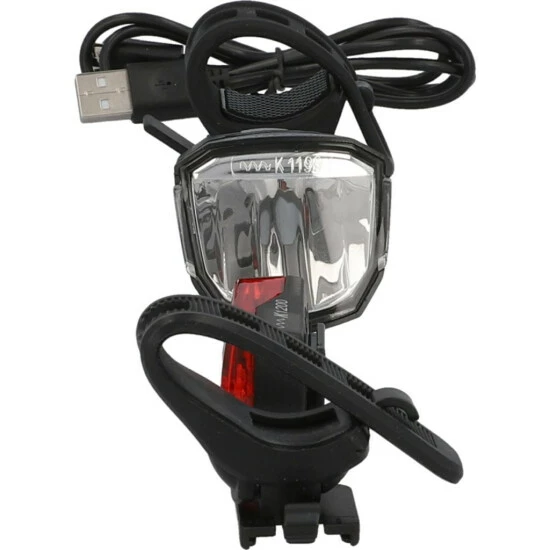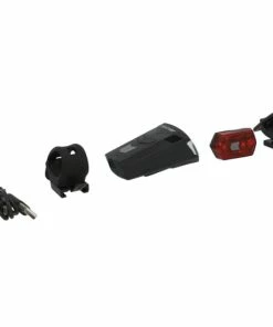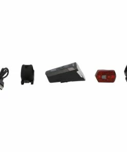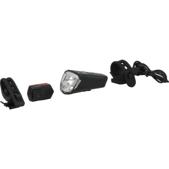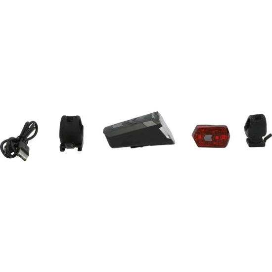 Inhalt: 1 Frontleuchte mit Halterung, 1 Rückleuchte mit