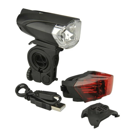 Inhalt: 1 Frontleuchte mit Halterung, 1 Rückleuchte mit
