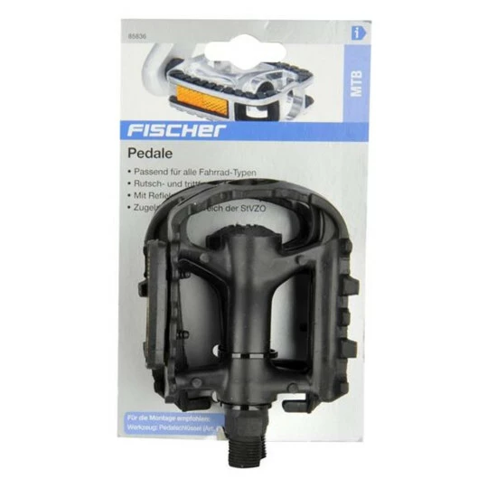 Pedale von Fischer passend für alle Fahrrad-Typen Rutsch und trittfeste Spezialausführung Material: Kunststoff mit Reflektoren Farbe: schwarz Zugelassen im Bereich der StVZO