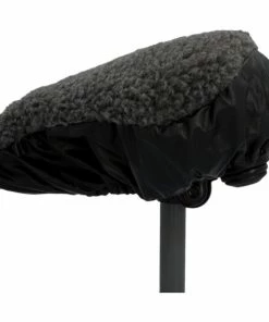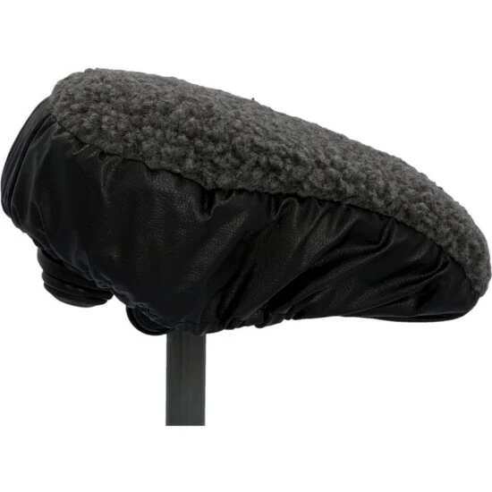 Die Wende-Satteldecke 2 in 1 eignet sich für alle gängigen Touren- und Sportsättel. Auf der einen Seite besteht sie aus grauem Fellimitat und sorgt für einen weichen, warmen Sitz. Das schwarze Kunstleder hingegen ist wasserabweisend und dient als Regensch
