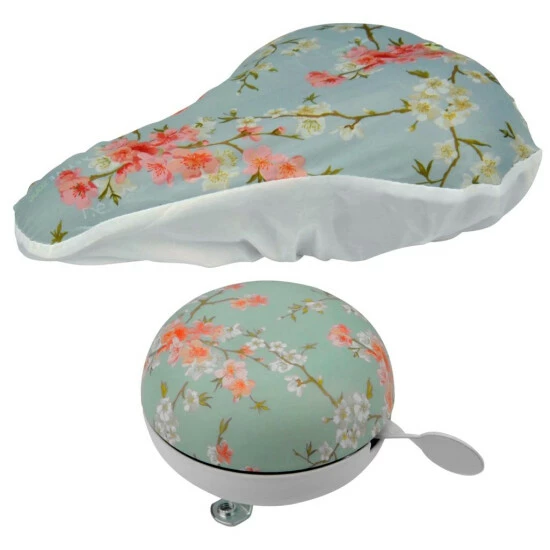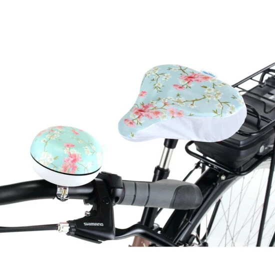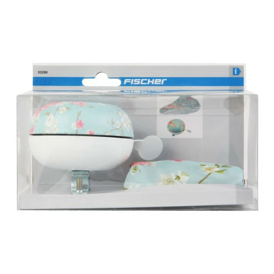 Das Fischer Glocken und Satteldecken Set verschönert jedes Fahrrad, vor allem das Blumenmuster ist ein echter Hingucker.