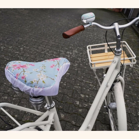 Passend zu der Glocke gibt es den Sattelschutz, der den Fahrradsitz auch an regnerischen Tagen trocken hält.