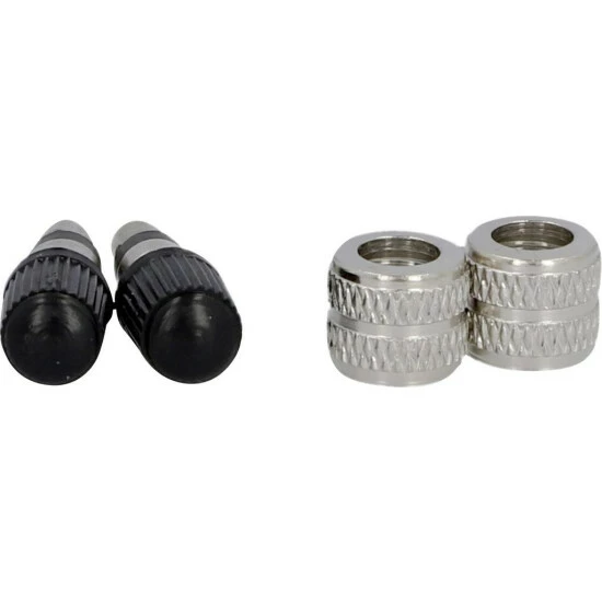 Lieferumfang: 2 Ventileinsätze, 2 Überwurfmuttern, 2 Ventilkappen
