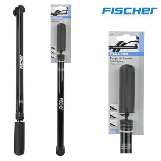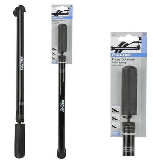 Fischer Pumpe für rahmenbefestigung. Länge 42 cm, durch reversiblen Einsatz passend für alle gängigen Ventile, passend für: Auto-Ventil (AV), Dunlop-Ventil (DV), Sclaverand-Ventil (SV). passend für: Halterung (Art. 85574)